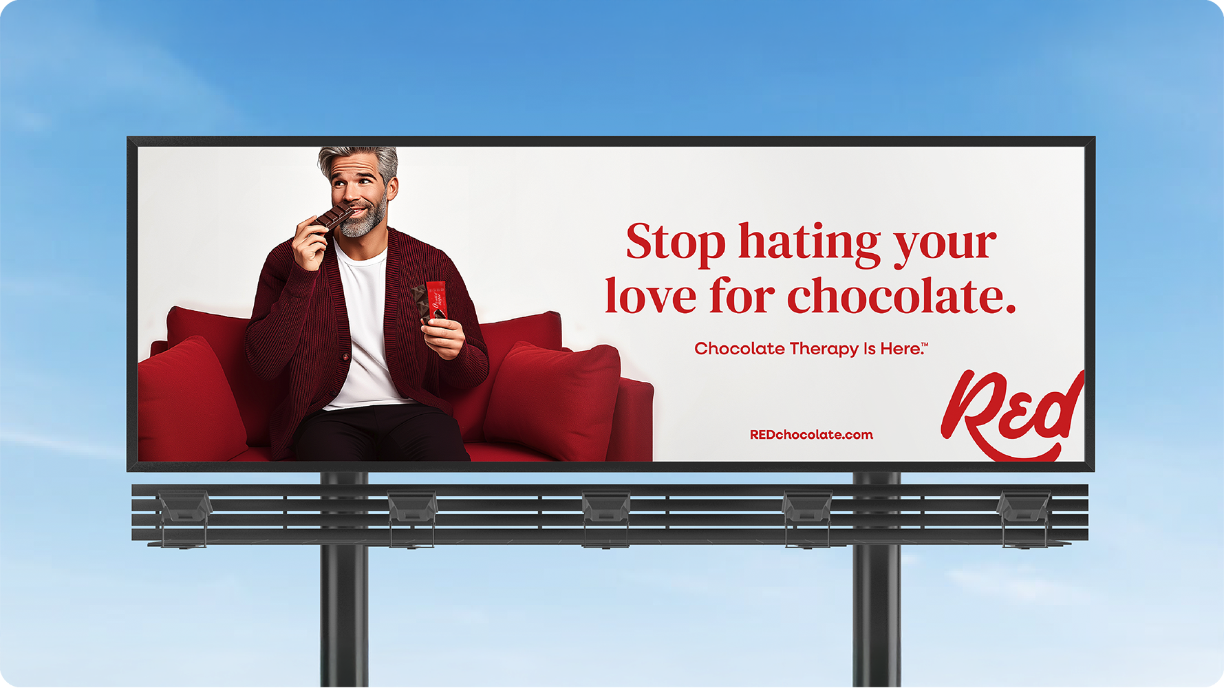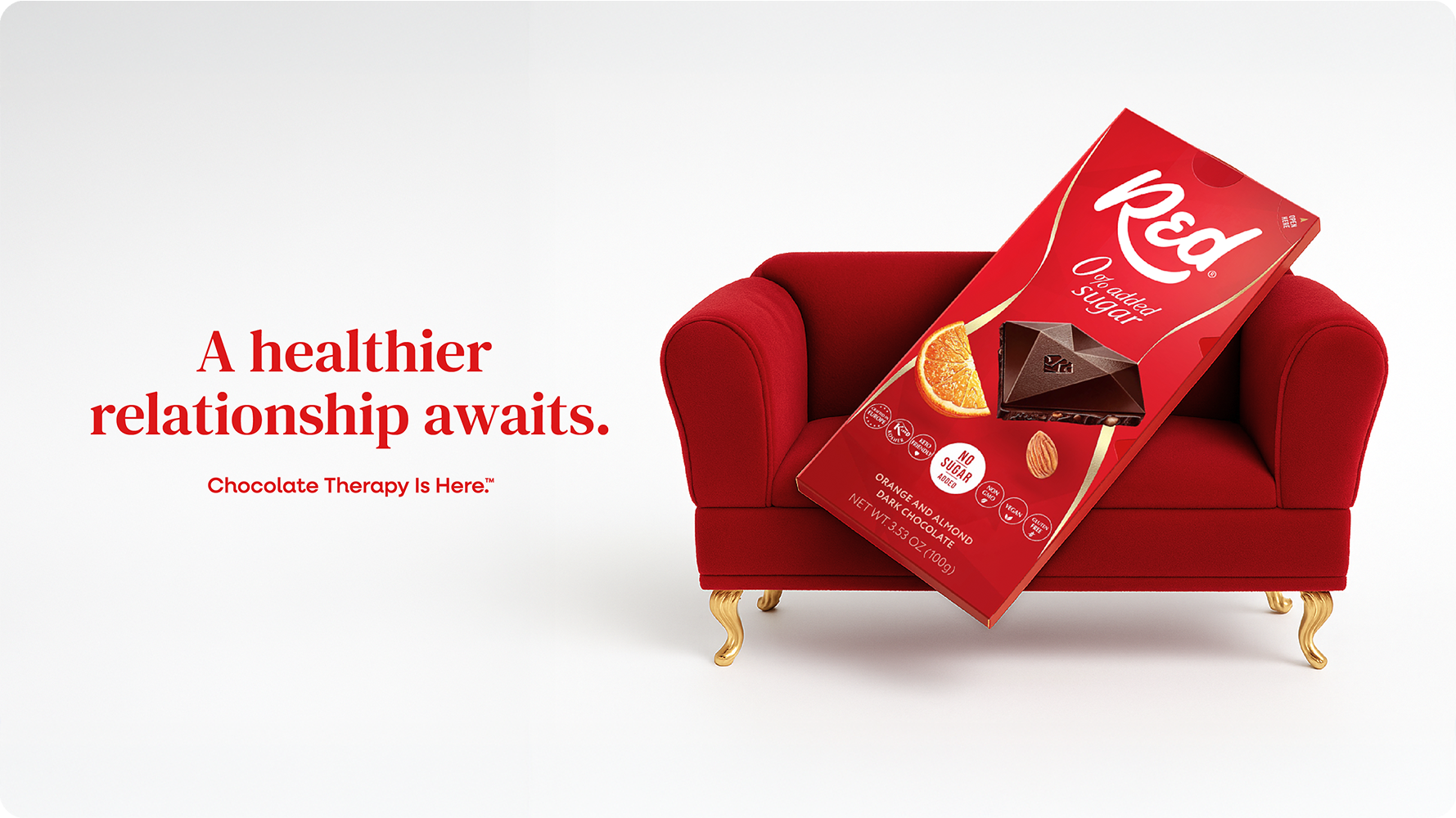 Red Chocolate had entered a category burdened by skepticism, as consumers associated no-added-sugar chocolate with chalky textures and compromised flavor. So we spoke to their hearts instead of their taste buds, turning a negatively-perceived attribute into the solution for something deeper… our complicated, love-hate relationship with chocolate itself. Chocolate Therapy™ positioned Red as the end of that emotional rollercoaster, and the beginning of a healthier relationship with chocolate. Through playful storytelling, cheeky humor, and the sweet support of our charming Chocolate Therapist, this campaign invites people to break up with guilt for good and rediscover the joy of their favorite treat.
